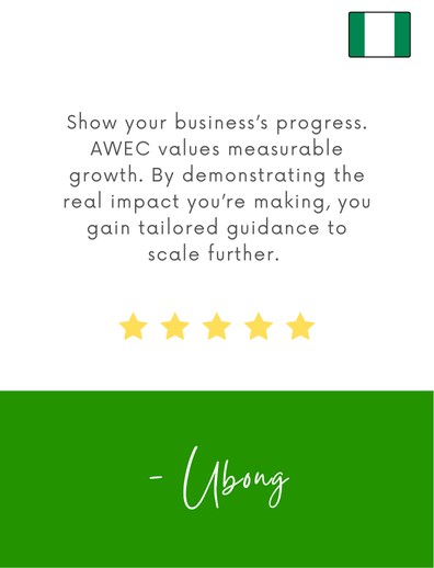 - Don’t give up. Review the feedback from AWEC and focus on improving those areas. Improve your business, refine your strategy, and apply again. Persistence pays off. AWEC rewards growth, resilience, and clear vision. - Ubong