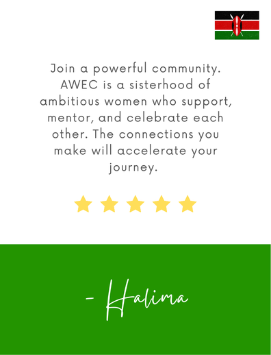 - First, do your research. Understand what AWEC stands for and how it aligns with your business goals. Second, know your business inside out. Be able to clearly communicate what you do and why it matters. Third, look at past AWEC cohorts for inspiration. See what those businesses are doing, learn from their journey, and use that to guide how you present your own story. – Halima